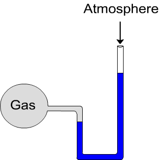 Gases (con't) In the manometer below the gas pressure is greater / less than atmospheric pressure.