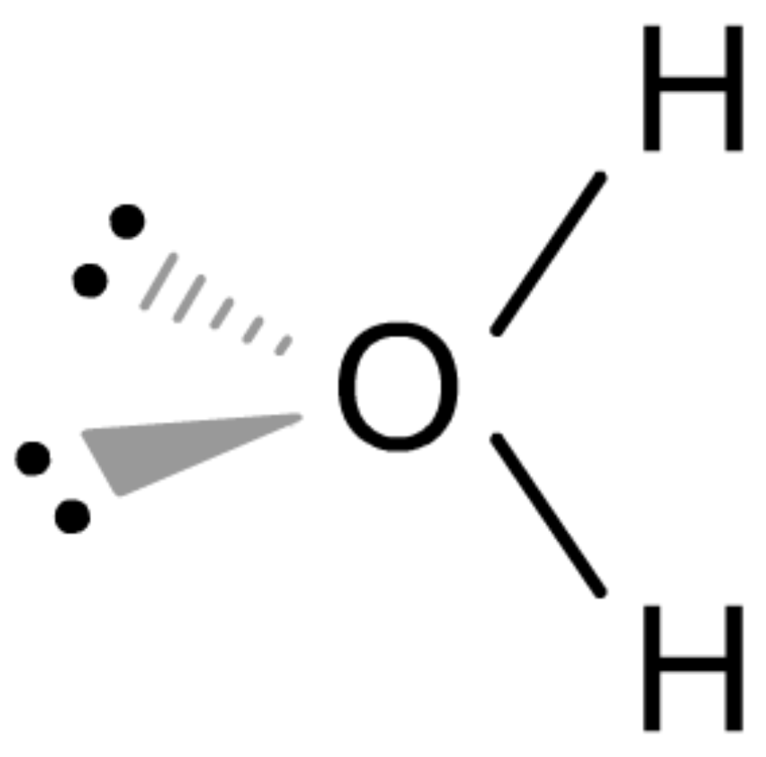 Geometry (con't) In the actual H2O molecule, the angle between the two bonding electron pairs (Blue Angle) is . . .
